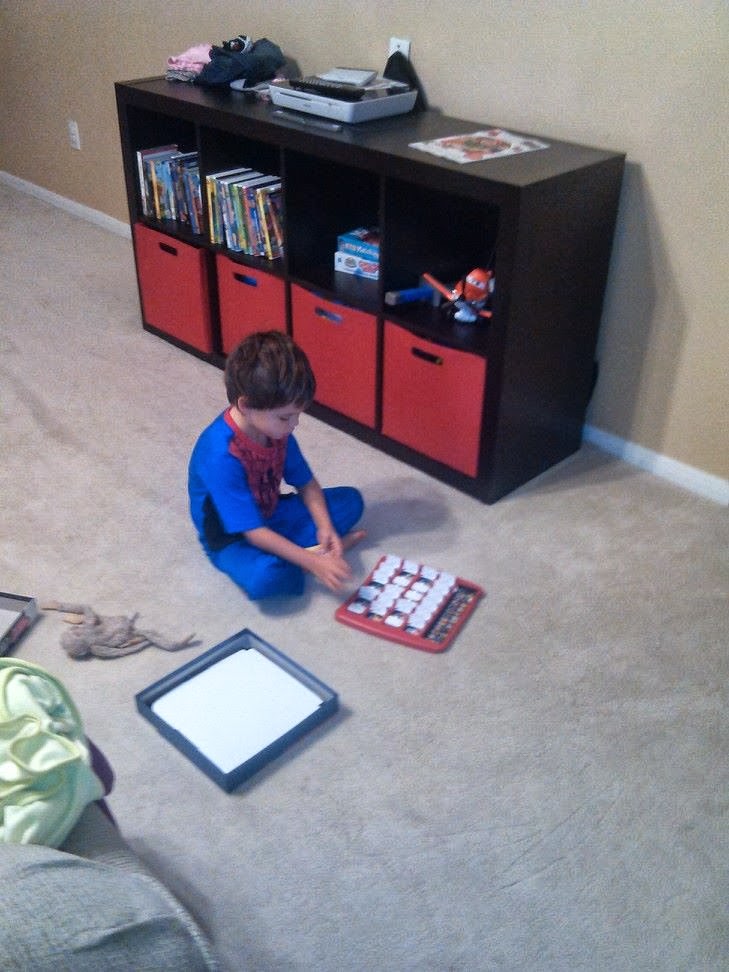 Before we knew it, was time to go get the boy from school. Once home I put the Diva down for a nap and E and I got ready for home group. The boy also did his home work and I think we got it done in record time. It was the letter "L" and we found 3 letter L words in the 1st 2 pages of the the magazine. After homework Eli spent some time showing me how to draw the number 8 and number 3. He also told me that I was doing it wrong. He also spent sometime going through all of our art supplies. We are loving our art table!